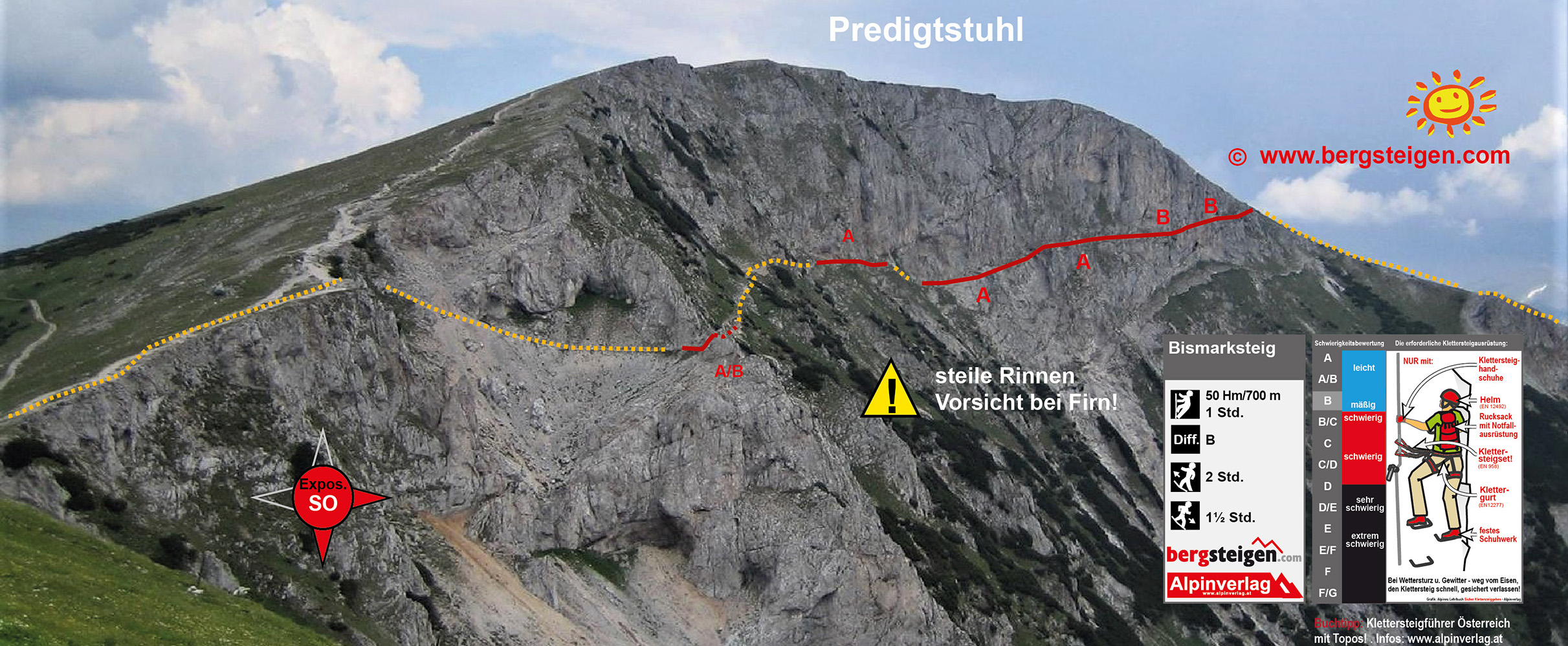 Der Bismarcksteig führt vom Törl mehr oder weniger in einer Höhenlinie unterhalb des Predigtstuhls zum Waxriegelsteig. Über den Bergrücken kann man wieder zum Karl-Ludwig-Haus zurück gehen.